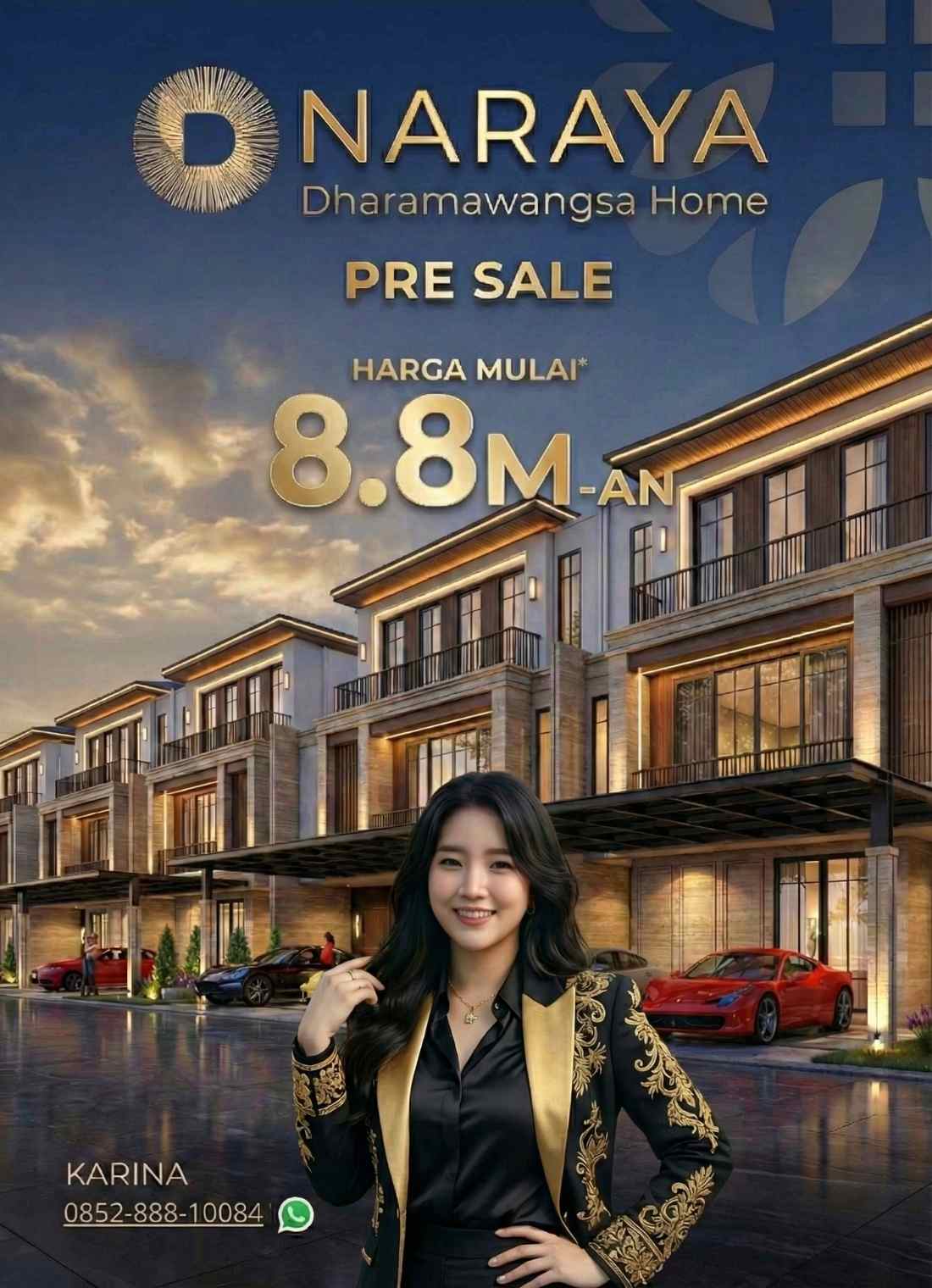 Naraya Dharmawangsa Bintaro saat ini dipasarkan pada kisaran harga ±6,8 M hingga ±8,8 M untuk unit 3 lantai di kawasan Sektor 7 Bintaro.